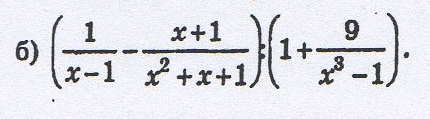 (frac{1}{x-1}-frac{x+1}{x^2+x+1}):(1+frac{9}{x^3-1})=frac{x^2+x+1-x^2+1}{(x-1)(x^2+x+1)}:frac{x^3-1+9}{x^3-1}=\ =frac{x+2}{x^3-1}:frac{x^3+8}{x^3-1}=frac{x+2}{x^3-1}*frac{x^3-1}{x^3+8}=frac{x+2}{(x+2)(x^2-x+4)}=frac{1}{x^2-x+4}
