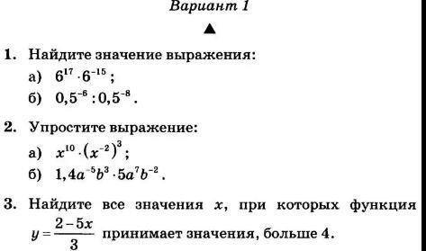 6^{-15} = 6^{2}=36\\ b) 0.5^{-6} /0,5^{-8}=0,5^{2}=0,25\\ 2. a) x^{10} *(x^{-2} )^{3}=x^{10}*x^{-6}=x^{4}\\ b) 1.4a^{-5}b^{3}*5a^{7}b^{-2}=7a^{2}b \\ 3.[/tex]