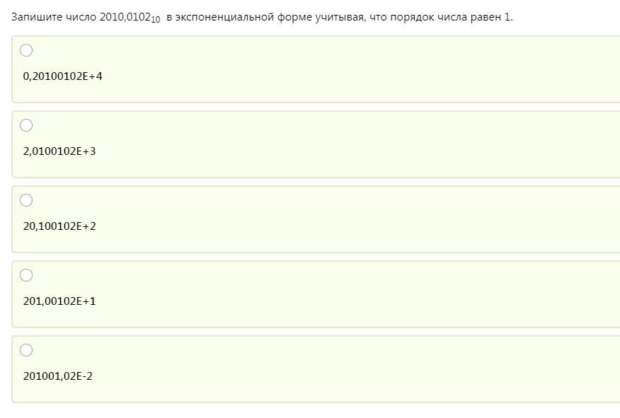 Запишите число 2010,010210 в экспоненциальной форме учитывая, что порядок числа равен 1.