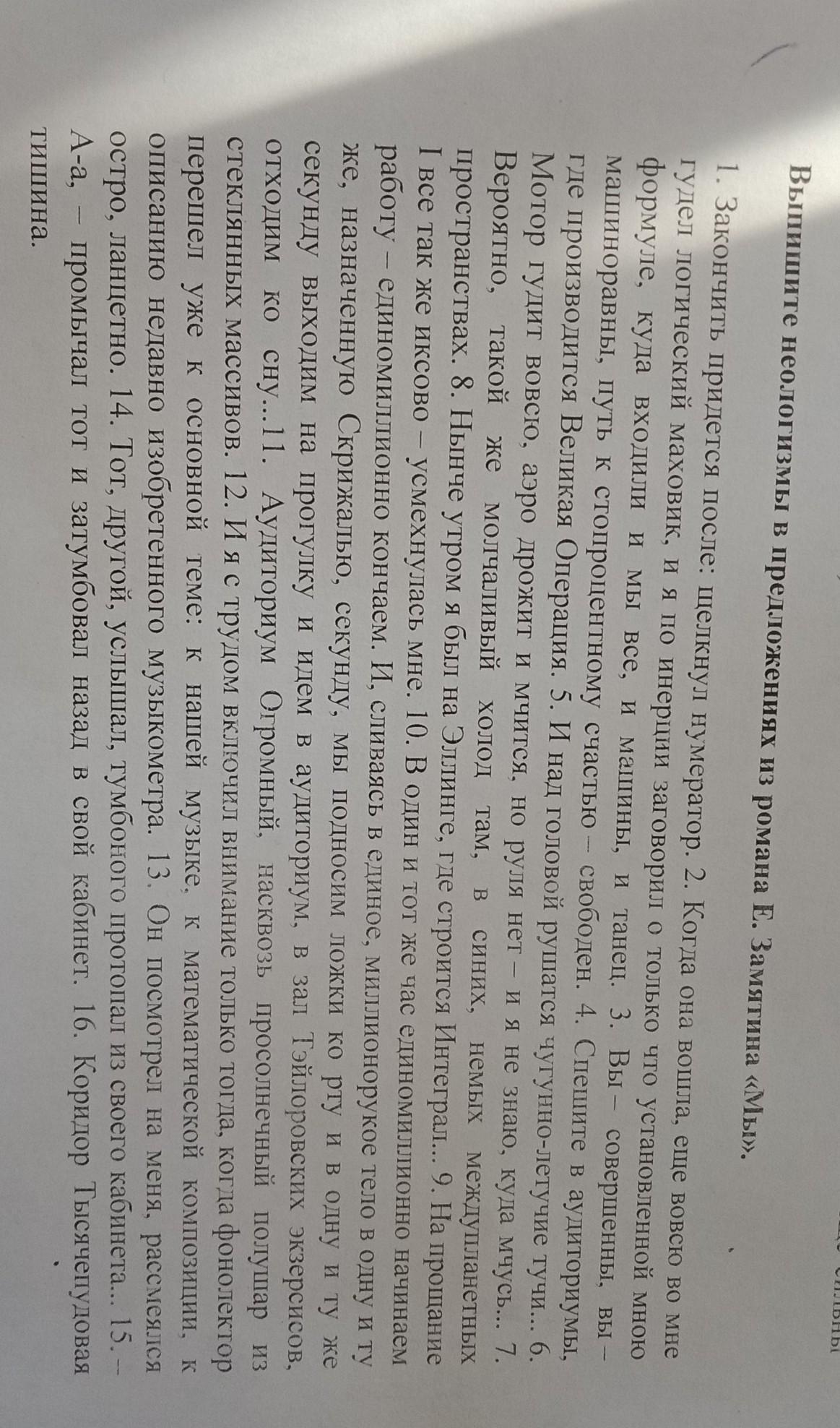 Выпишите неологизмы в предложениях из романа Е. Замятина «Мы».