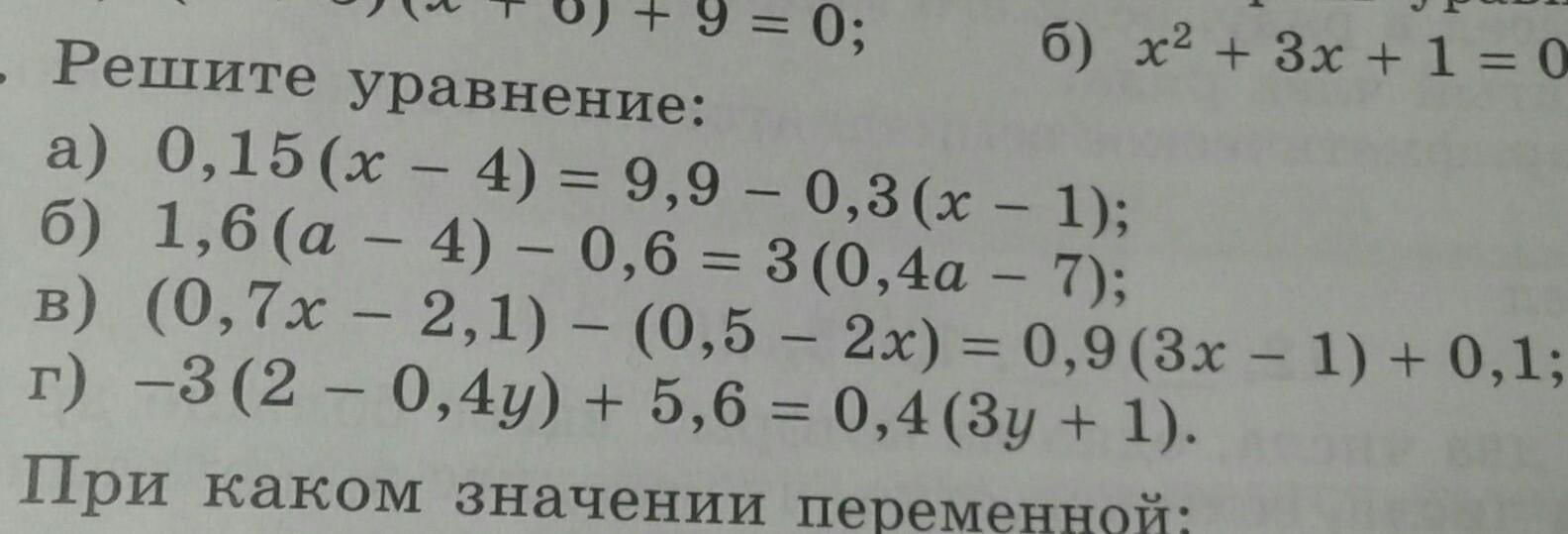 б)1,6(a-4)-0,6=3(0,4a-7)