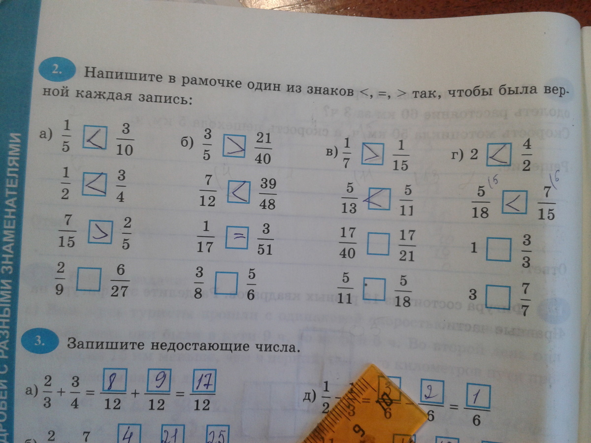 1=33,2/9=6/27,38<5/6,3>7/7,17/40<17/21,5/11>5/18