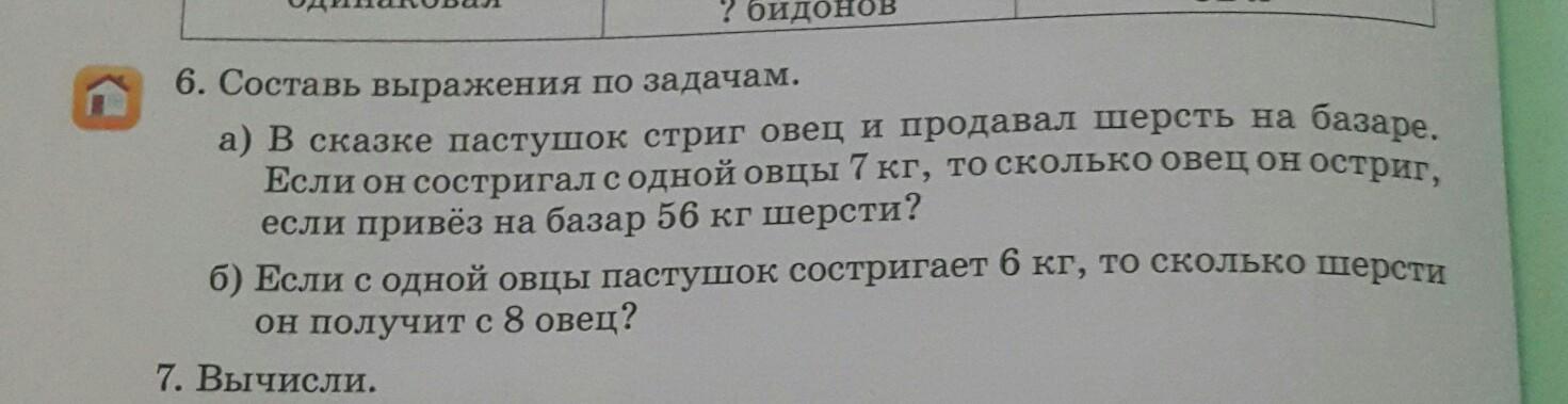 Ответ:6. а. 56кг/7кг=8 состриг 8 овец