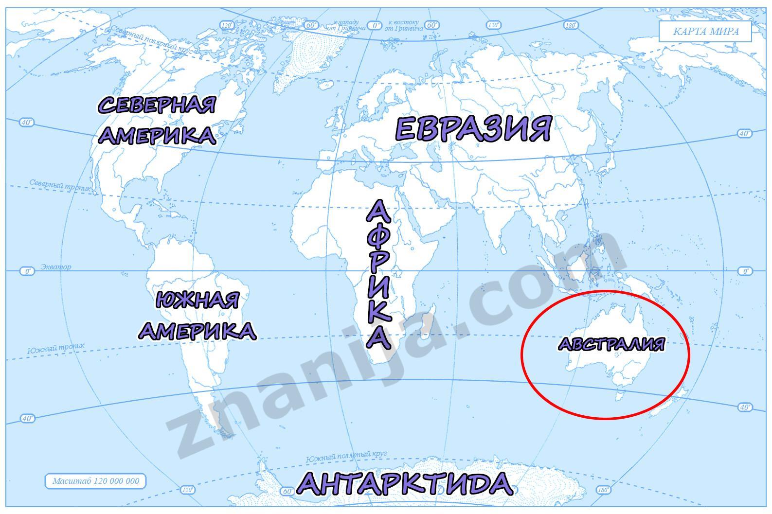 Чтобы ответить на этот вопрос, достаточно взглянуть на физическую карту мира. На ней мы увидим, что Австралия отдалена и отделена водным пространством от остальных континентов. В принципе, это видно на любой карте мира и на контурной тоже.