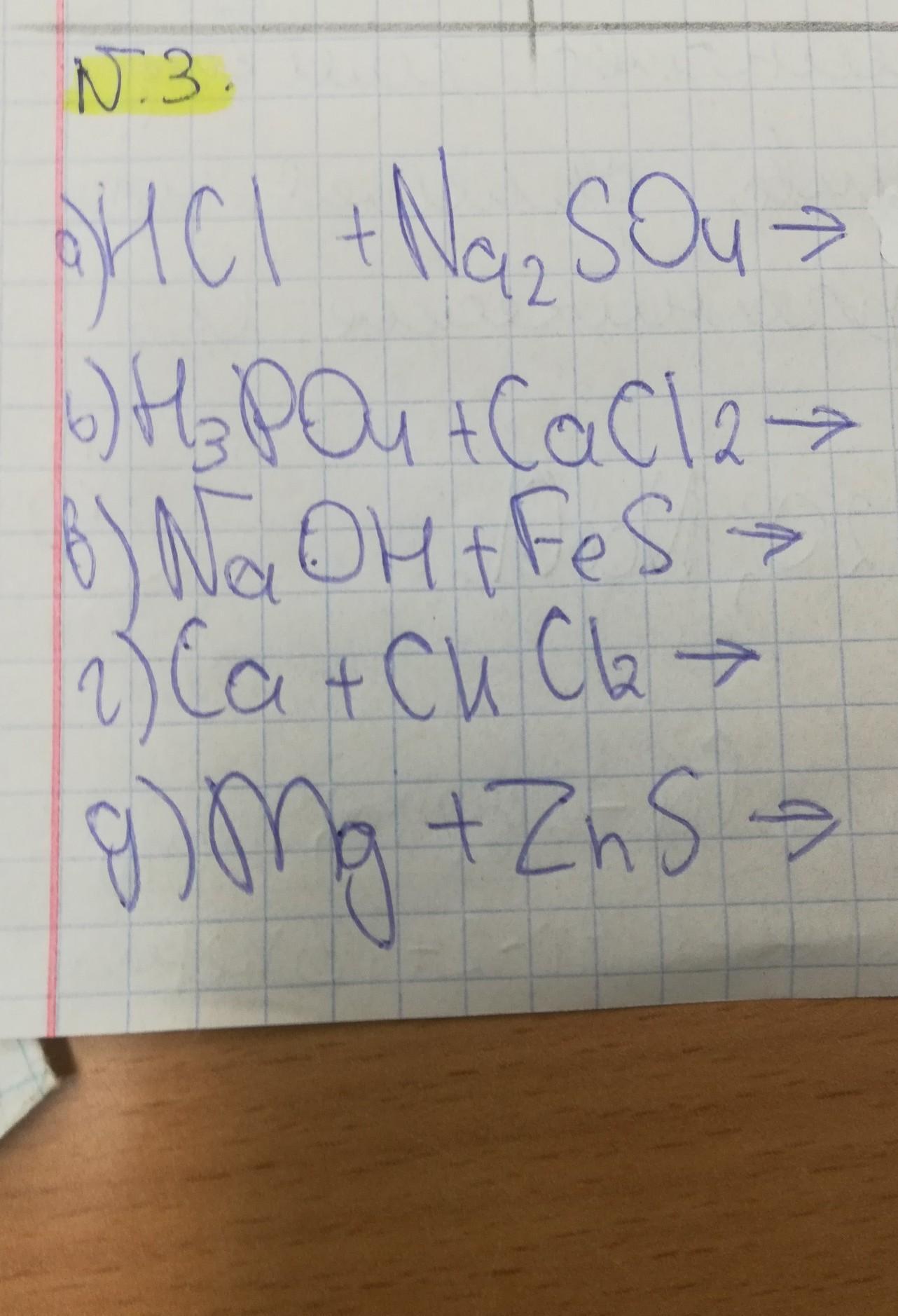 б) 2H3PO4 + 3CaCl2 = Ca3(PO4)2 +6 HCl