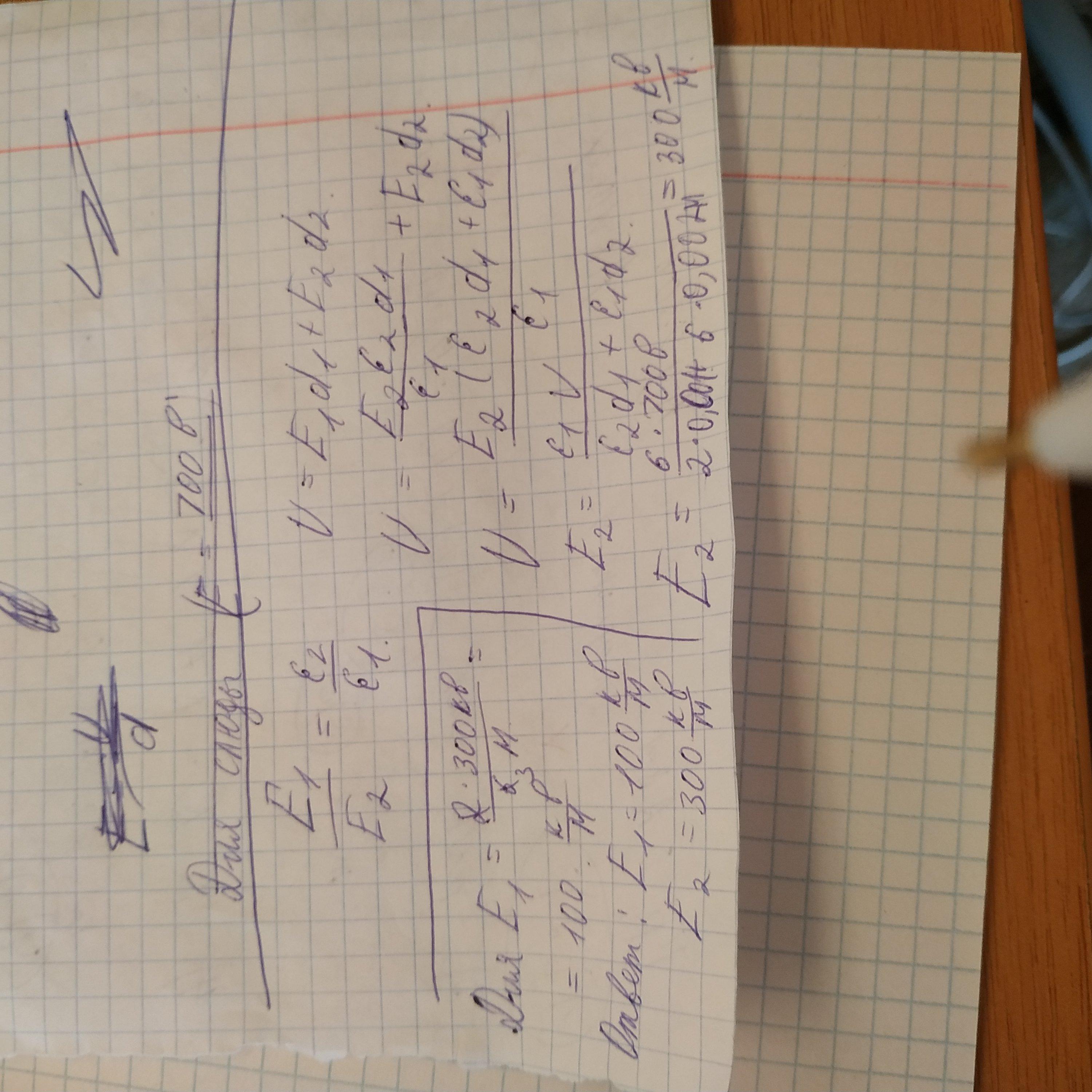 Диэлектрик плоского конденсатора состоит из слоя слюды толщиной d1 = 1мм и слоя парафина толщиной d2 = 2 мм. Определите напряженность поля в каждом слое диэлектрика, если к диэлектрику приложено напряжение U = 700 B. Диэлектрическая проницаемость слюды ε₁ = 6 парафина ε₂ = 2
