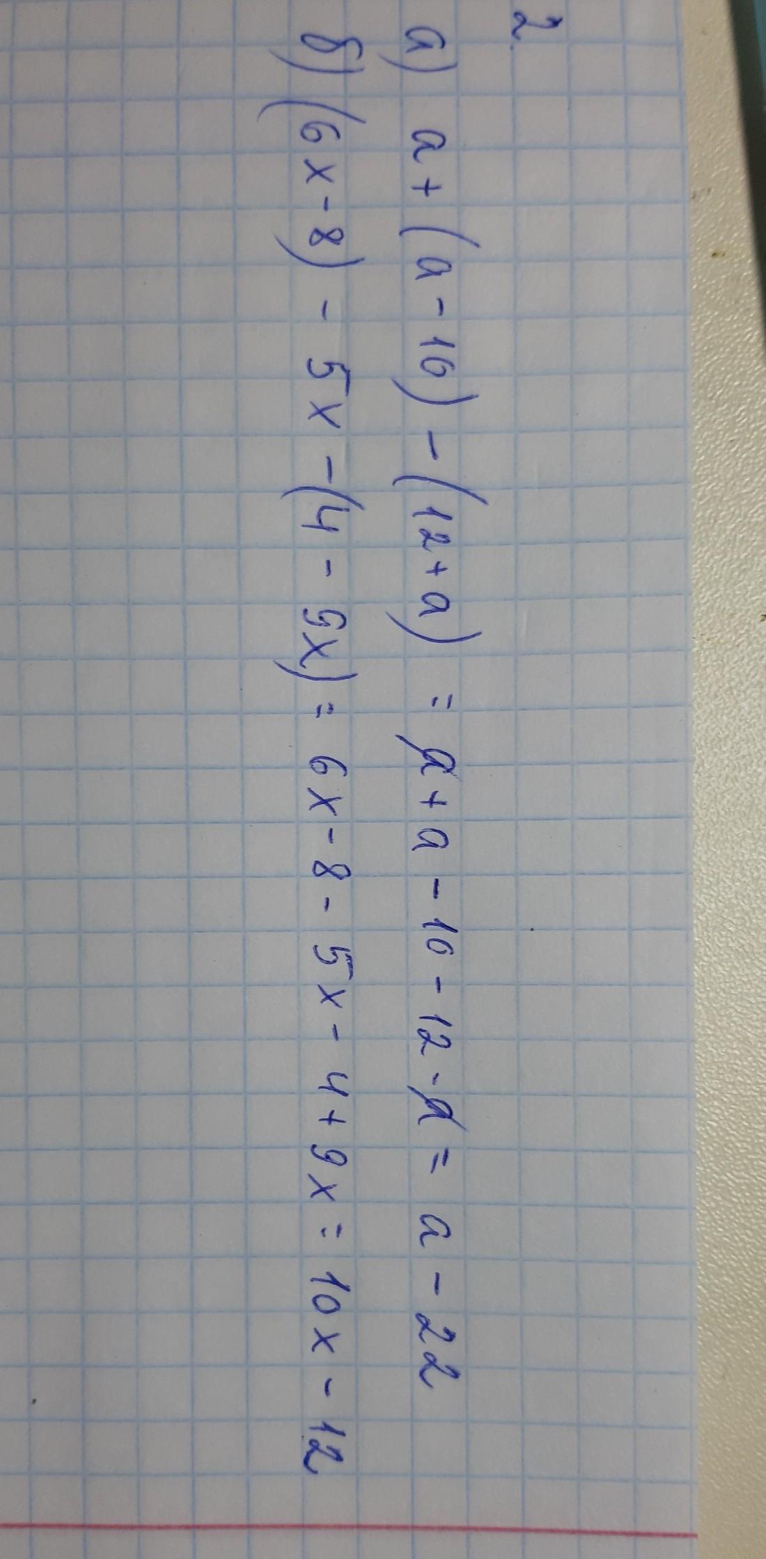 б) (6х-8)-5х-(4-9х) = 6х-8-5х-4+9х= 10х-12 = 2(5х-6)