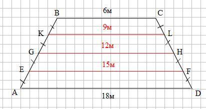 GH = (BC + AD)/2 = (6 + 18)/2 = 12(м)