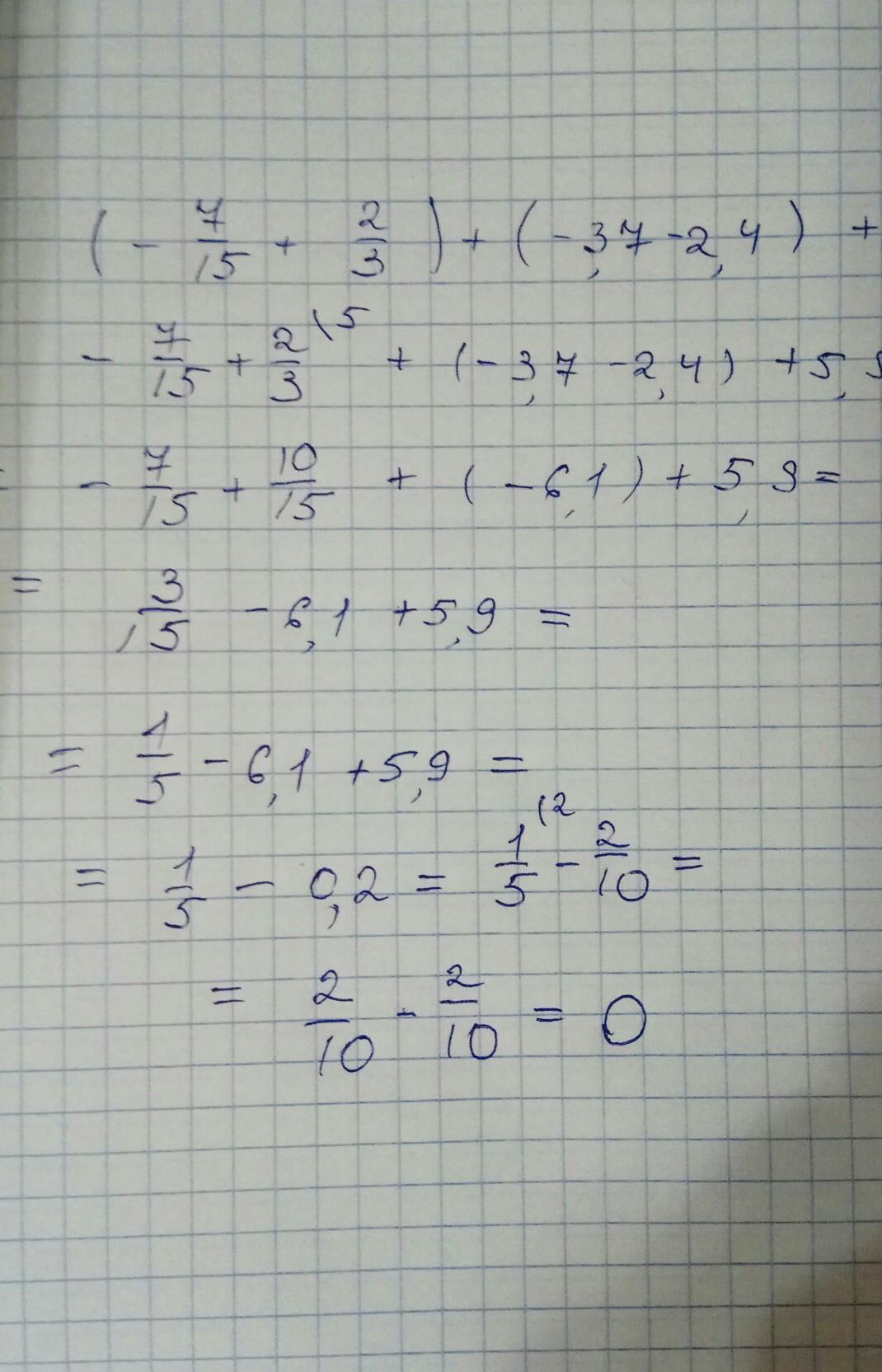 (-7/15+2/3)+(-3,7-2,4)+5,9