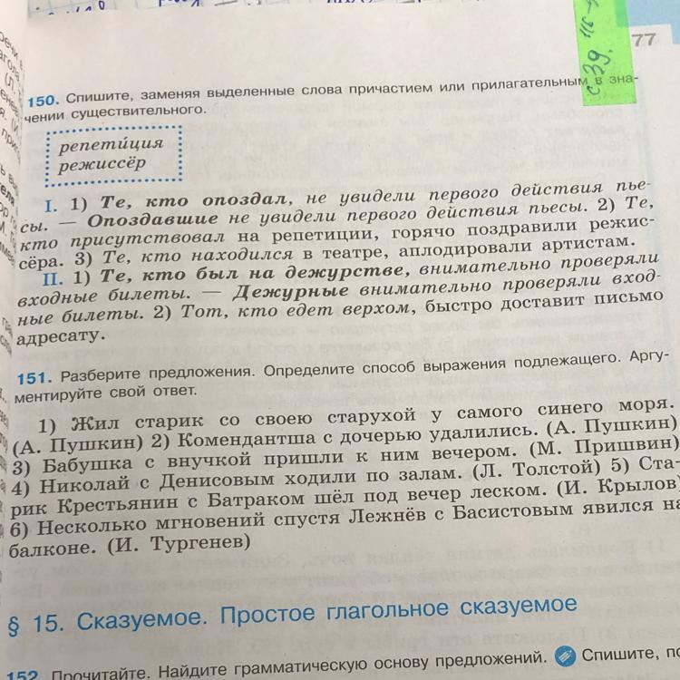 Ответ:2)Присутствовавшие на репетиции , горячо поздравили режессера.3)Находившееся в театре , аплодировали артистам