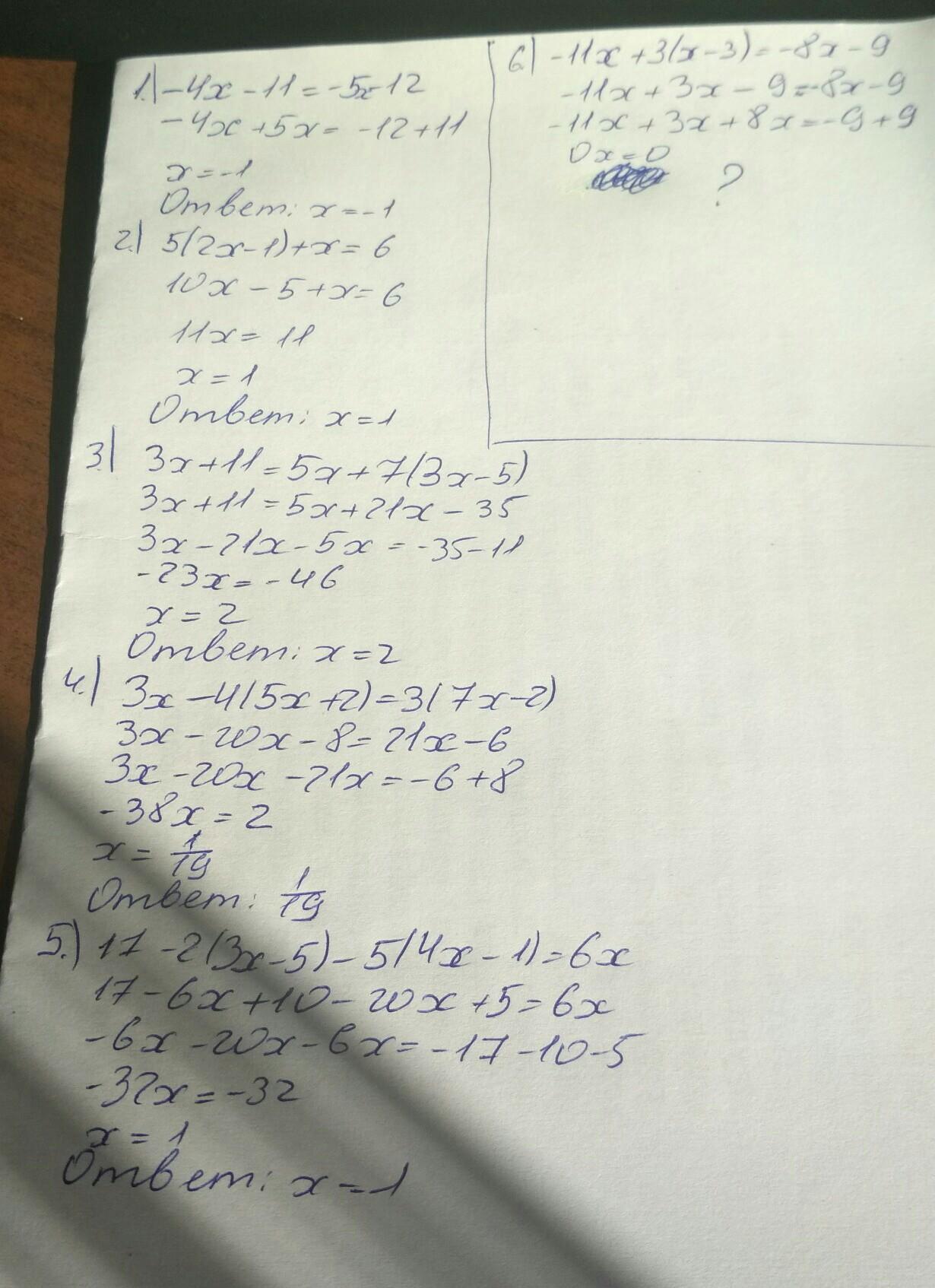 5. 17 – 2(3х – 5) — 5(4х – 1) =
