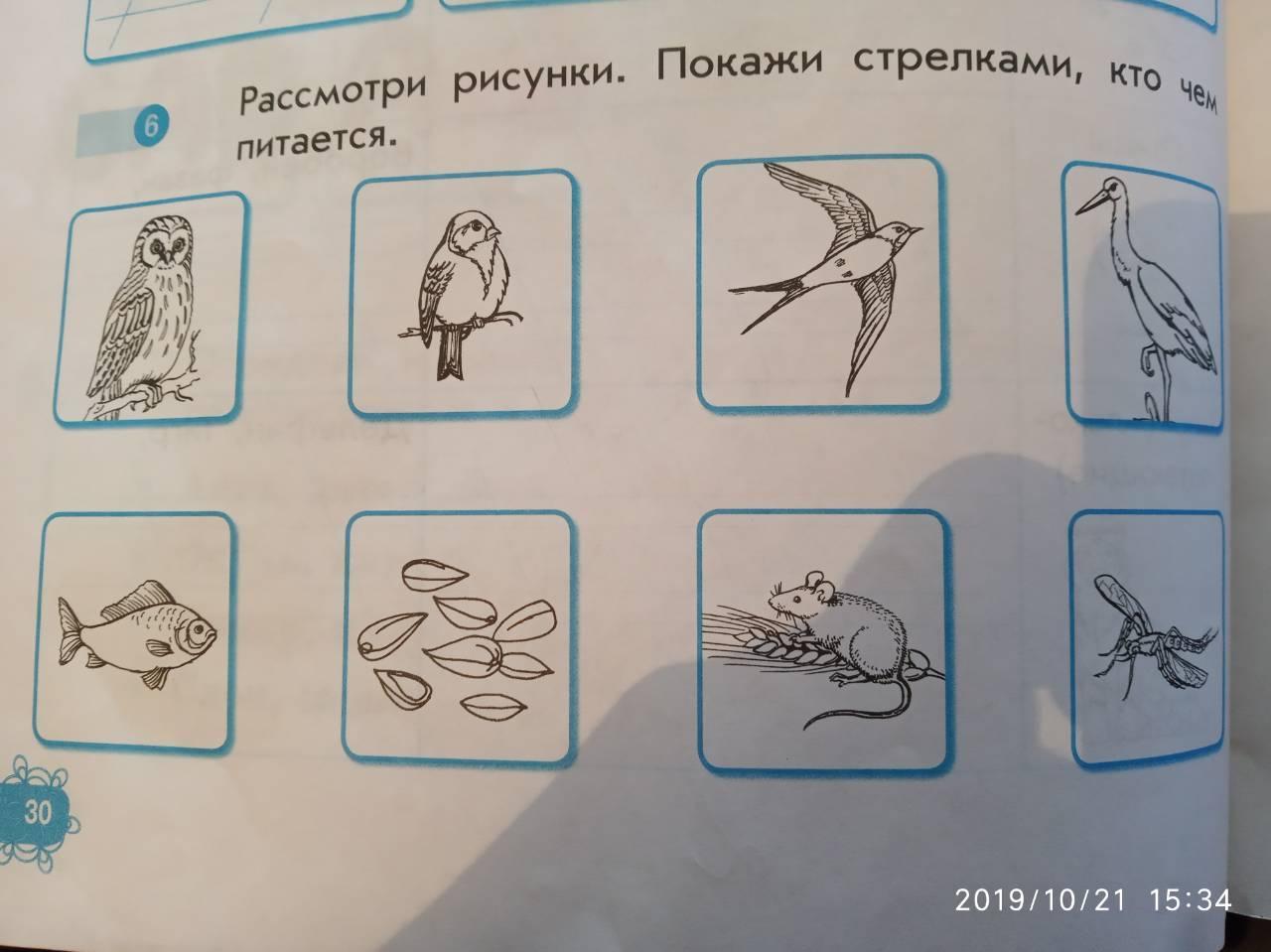 Сова-Мыши,Цапля-рыбой,Грач-зёрна,Галка-комары