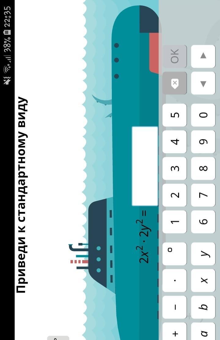 Смотрите, для стандартного вида нужно перемножить все числовые коэффициенты и поставить результат их умножения слева самым первым множителем. Числа 2 и 2 можно помножить, таким образом вы сгруппируете. По свойства степени перемножить буквы в алфавитном порядке. Надеюсь, вам станет понятно.