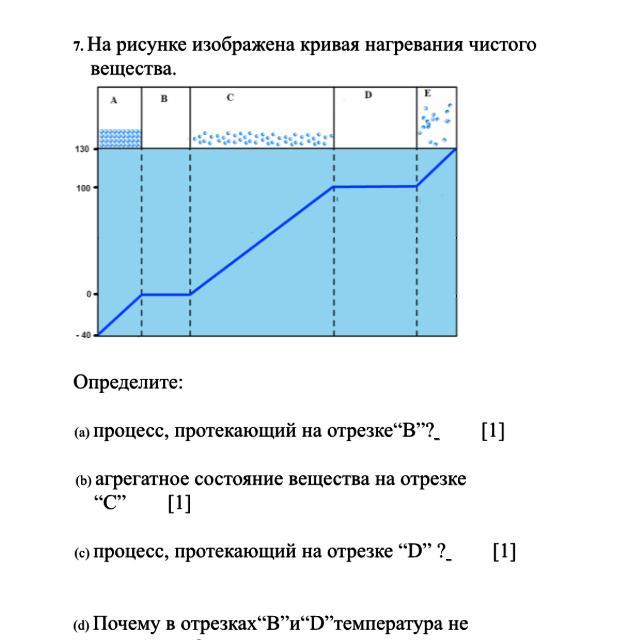 d) В отрезках B и D температура не изменилась, потому что вся энергия уходит на разрушение связей между молекулами.