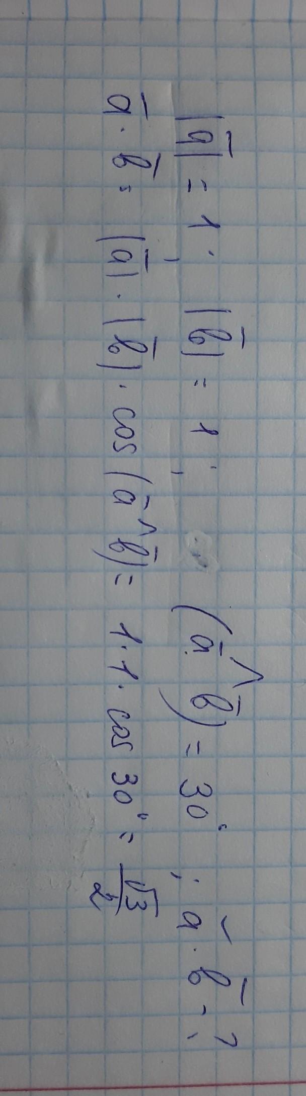 Нужно просто подставить данные в формулу. Модуль единичного вектора будет равен 1. Ответ: √3/2