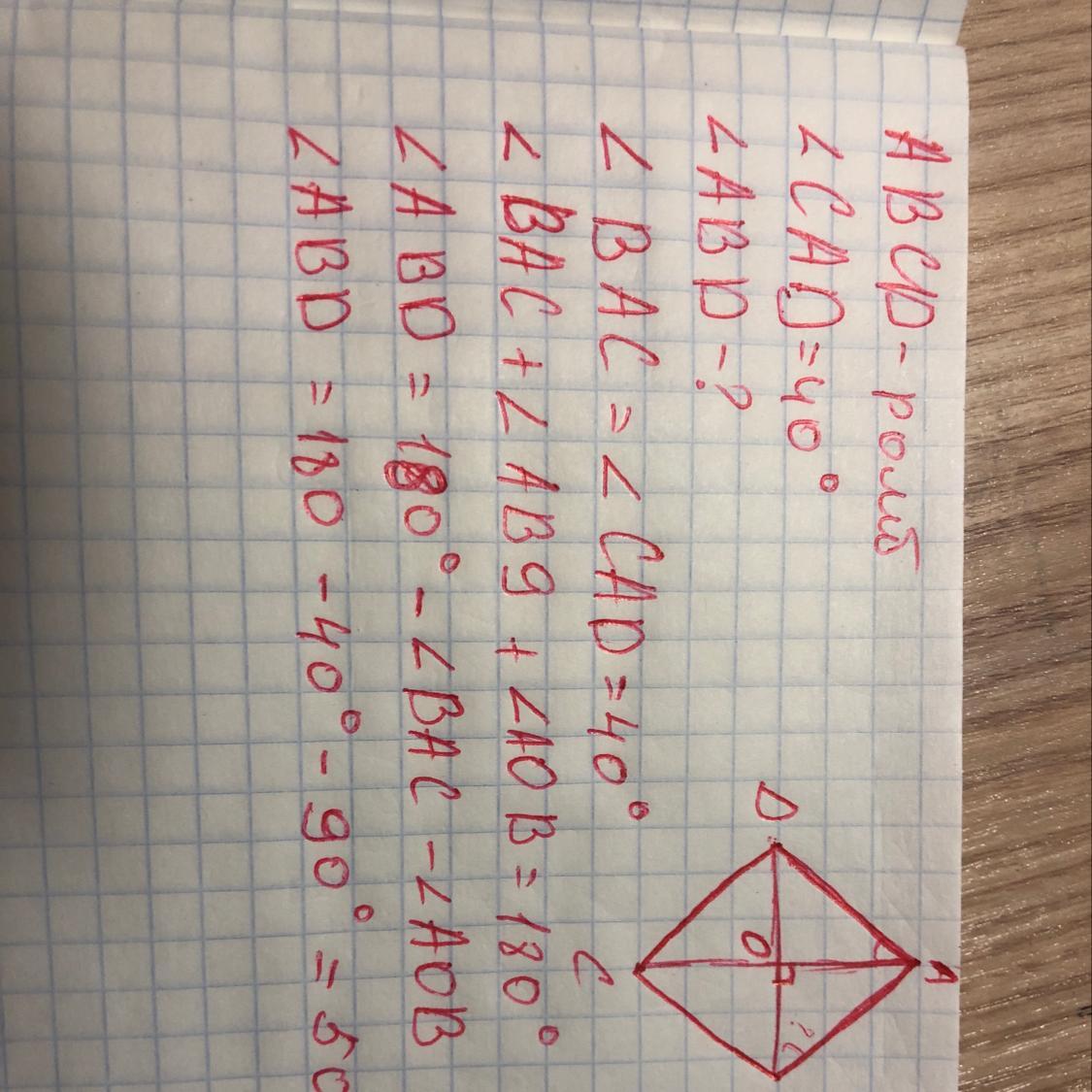 углы ВАС и САД ровны, так как диагонали ромба являются так же биссектрисами его углов, то есть делит углы ромба пополам