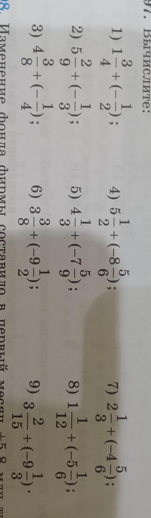 7) 2целых 1/3 + (-4целых 5/6) = 2целых 2/6 - 4целых 5/6 = -2целых 3/6 = -2целых 1/2