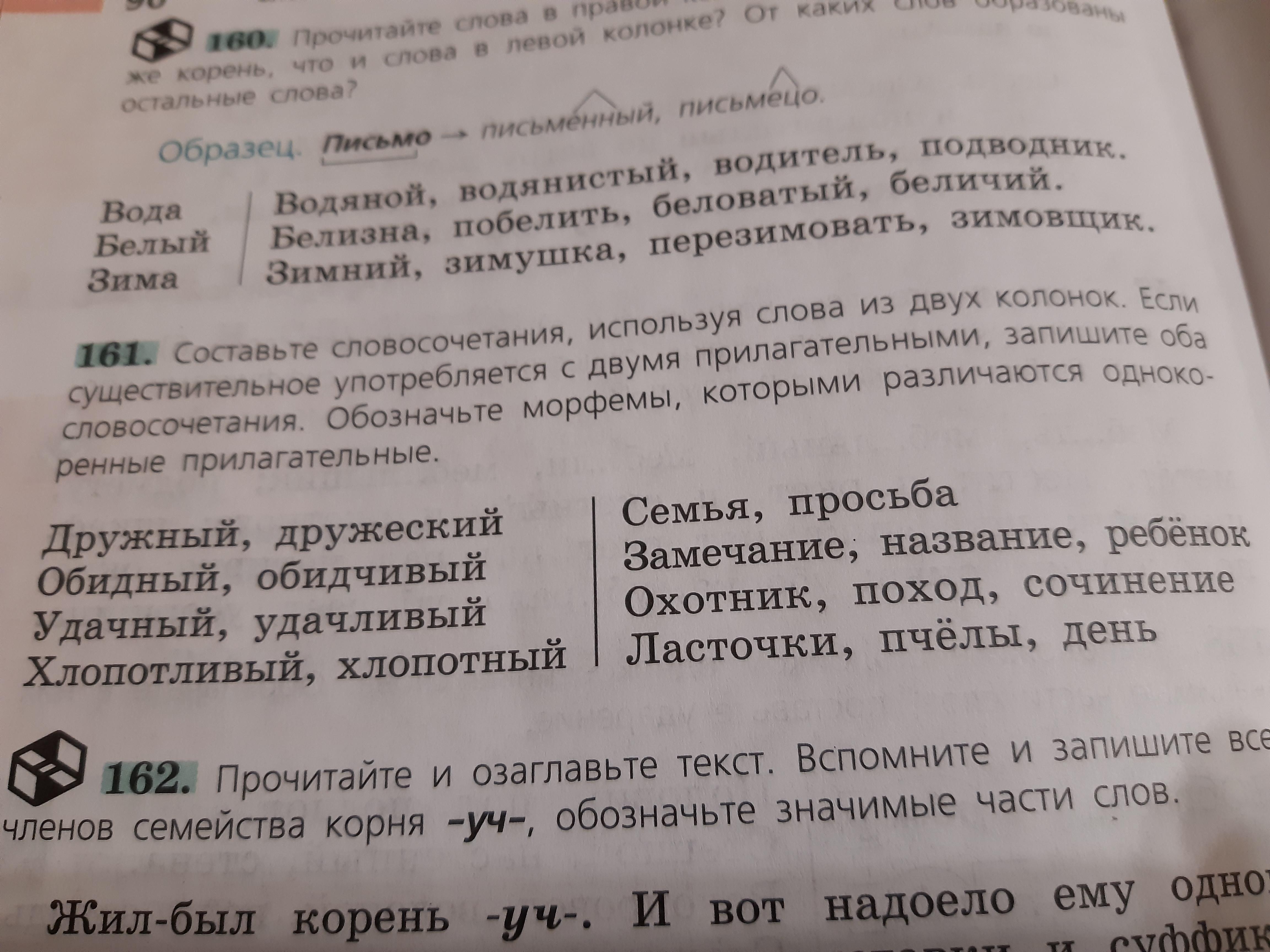 Ответ:Дружная семья,дружеская просьбы(различаются: еск суффикс),обидное замечание , обидное название , обидчивый ребенок(различаются: ив суффикс), удачливый охотник, удачный поход,удачное сочинение(различаются: н суффикс),хлопотливые ласточки,хлопотливы пчелы,хлопотный день(различаются: н суффикс)