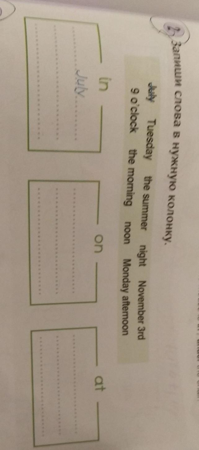 AT: night, the morning, Monday afternoon, 9 o'clock