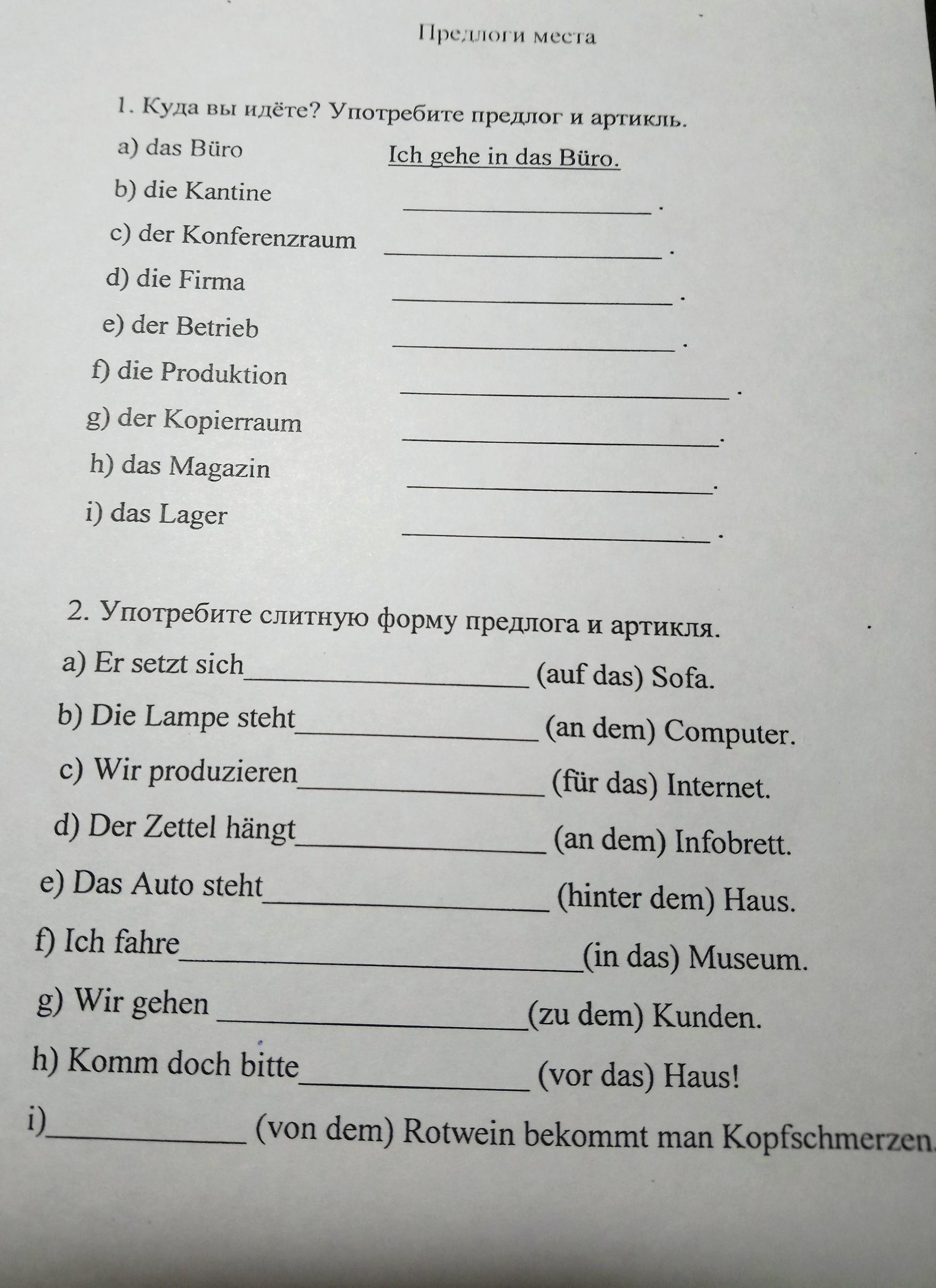 g) Ich gehe in den Kopierraum.