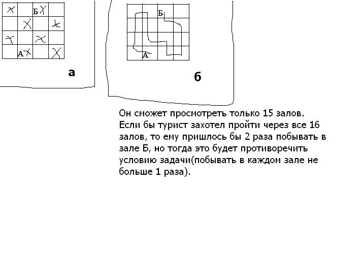 Нарисуйте какой-нибудь его маршрут наибольшей длины и докажите что большее количество залов
