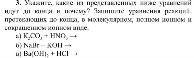 пожалуйста помогите кто шарит в химии 9 класс, уравнения ионные составлять не надо, просто укажите какие идут до конца, какие нет, и почему