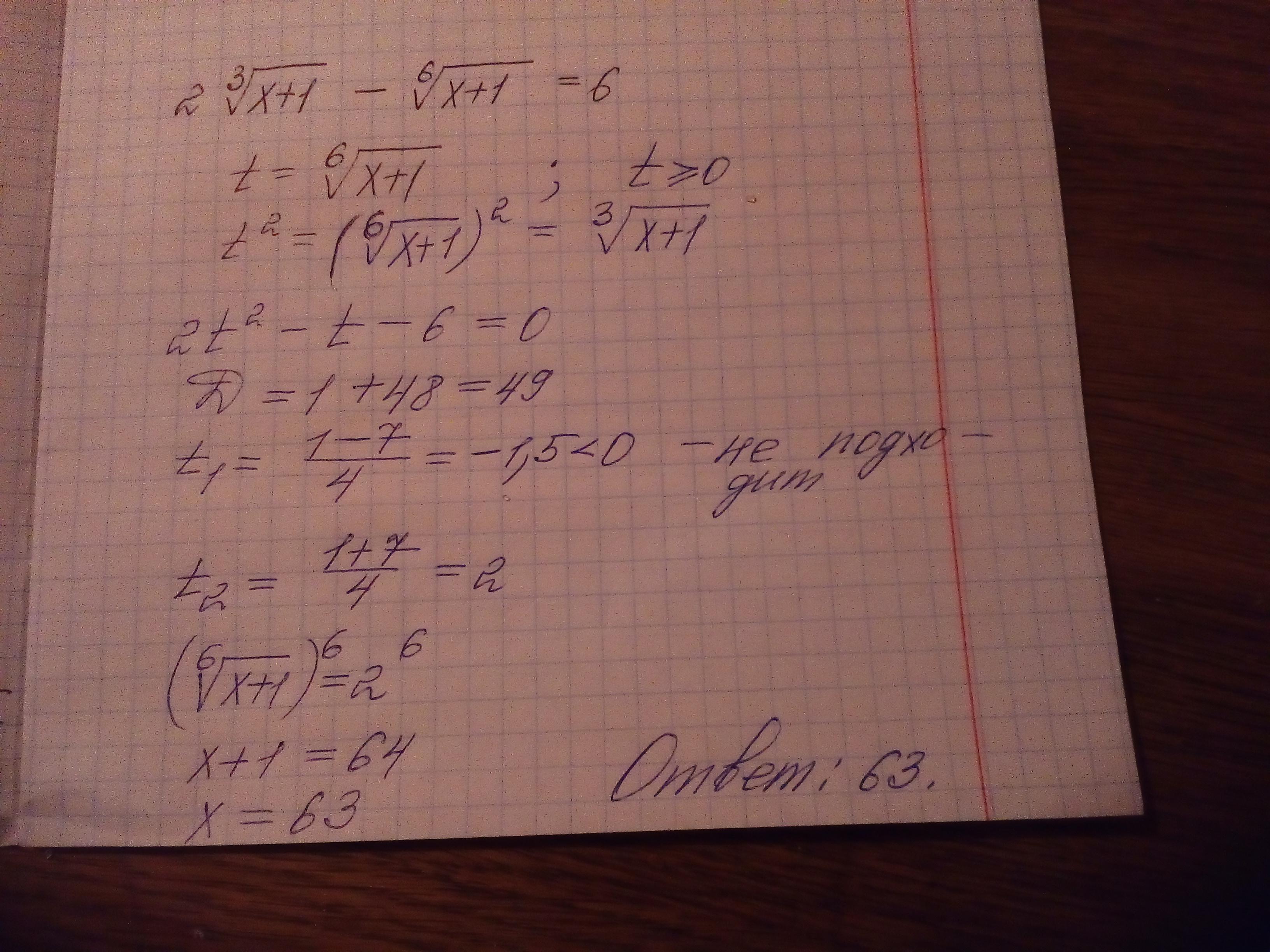(х+1)^(1/6)=2;