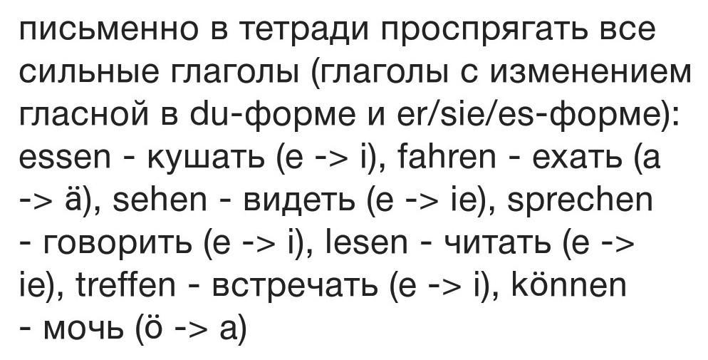 essen, fahren, sehen, sprechen, lesen, treffen, können
