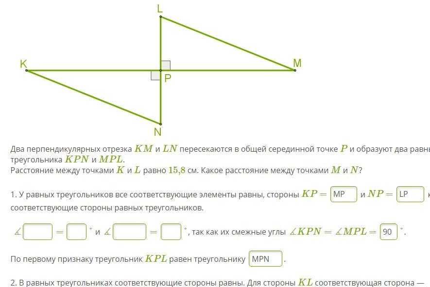 LPK = 90° и NPM = 90°, так как их смежные углы KPN = MPL = 90°