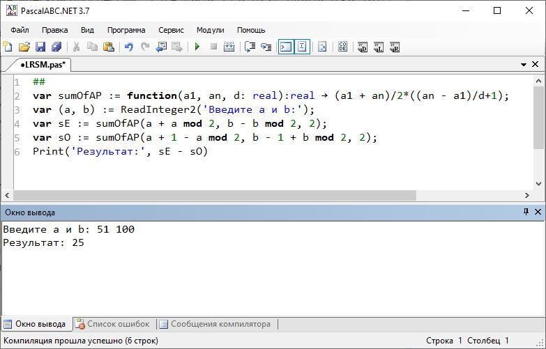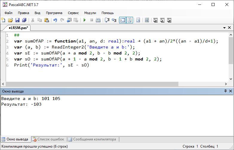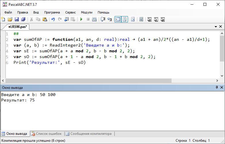 - var (a, b) := ReadInteger2('Введите a и b:');