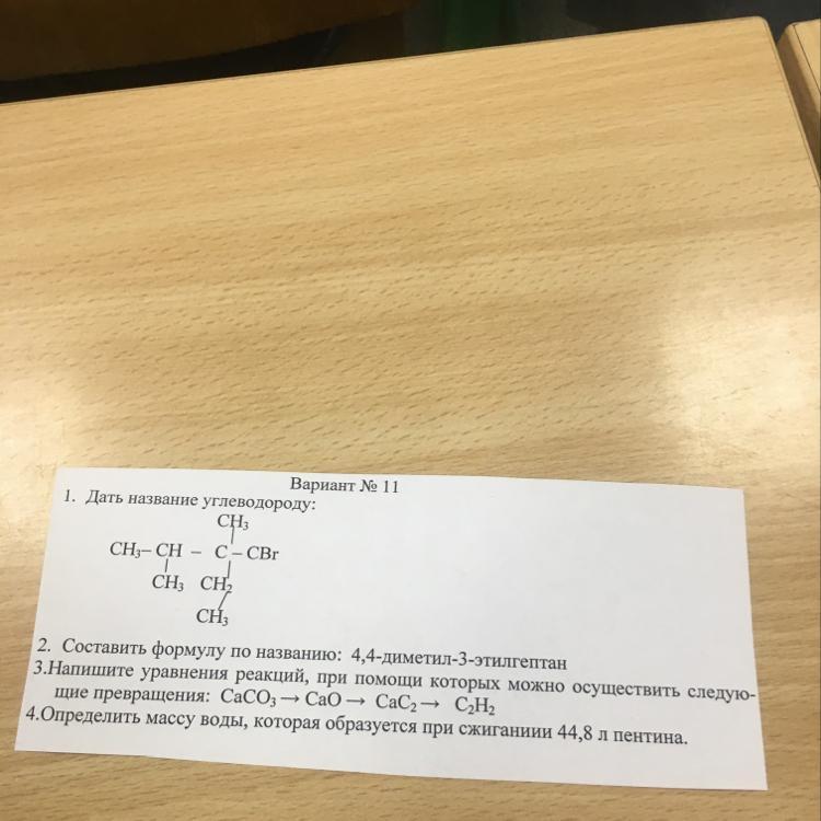 2. Составить формулу по названию: 4,4-диметил-3-этилгептан