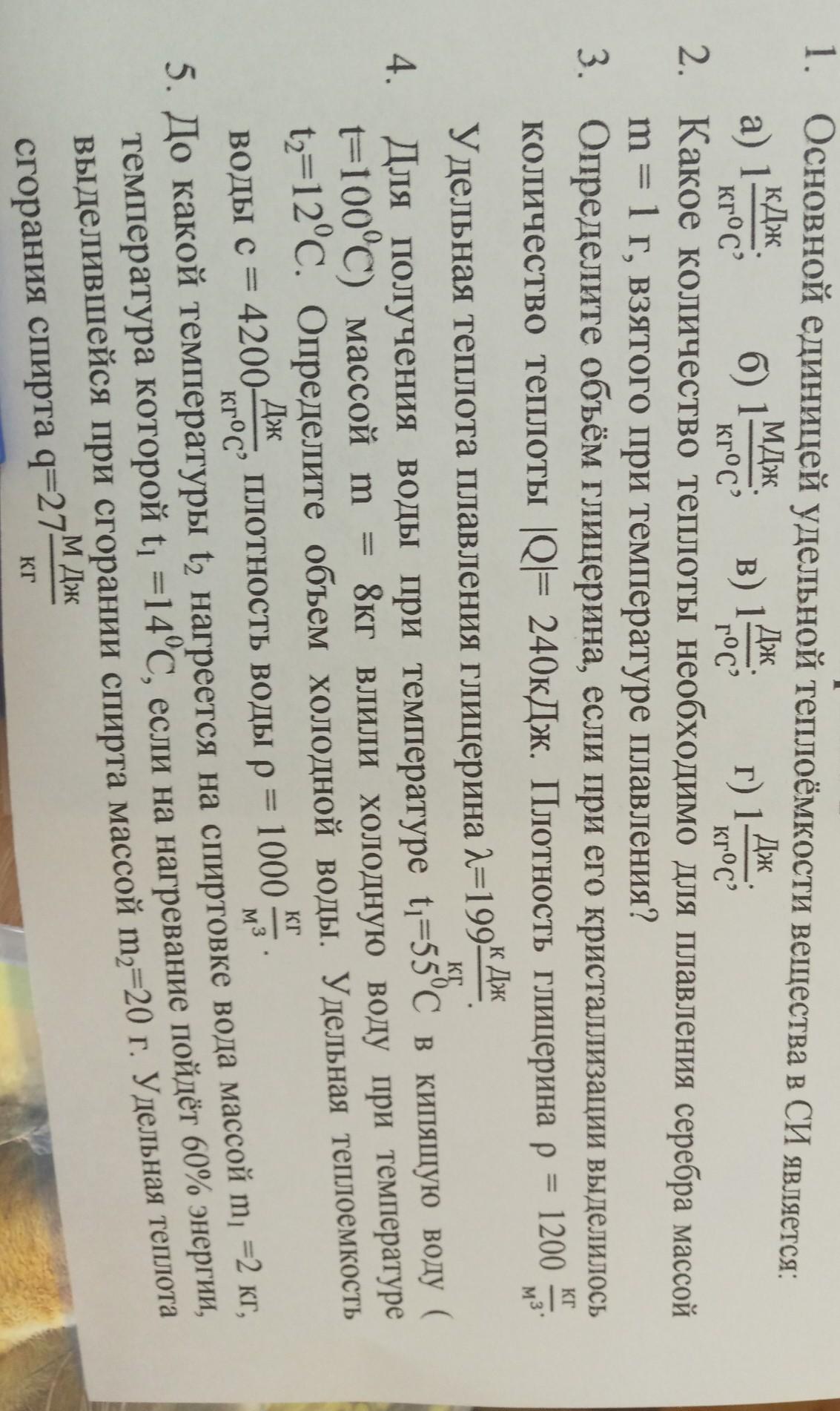 N1 ответ ( в . джоуль делить на на гр. Цельсия