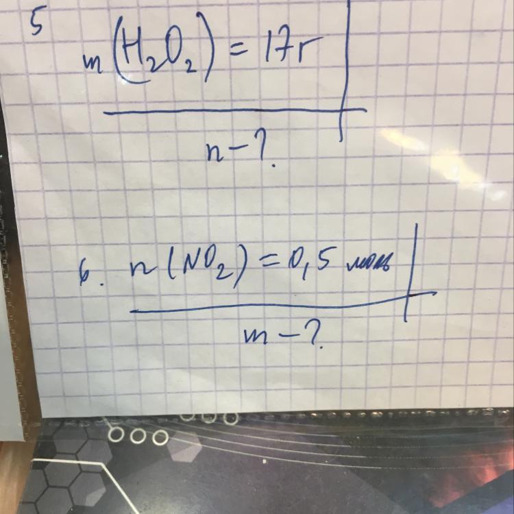 5) n(H2O2) = m/ M = 17 г / 34 г/моль = 0,5 моль