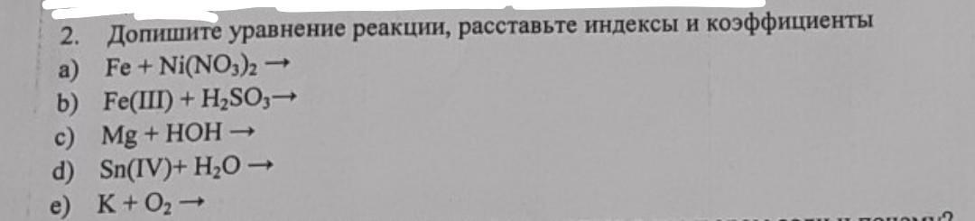 2. Допишите уравнение реакции, расставьте индексы и коэффициенты