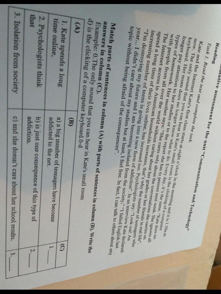 1с 2а 3б так как катя была привязана к интернету она не обращала внимания на свои результаты и остальные лёгкие по тексту