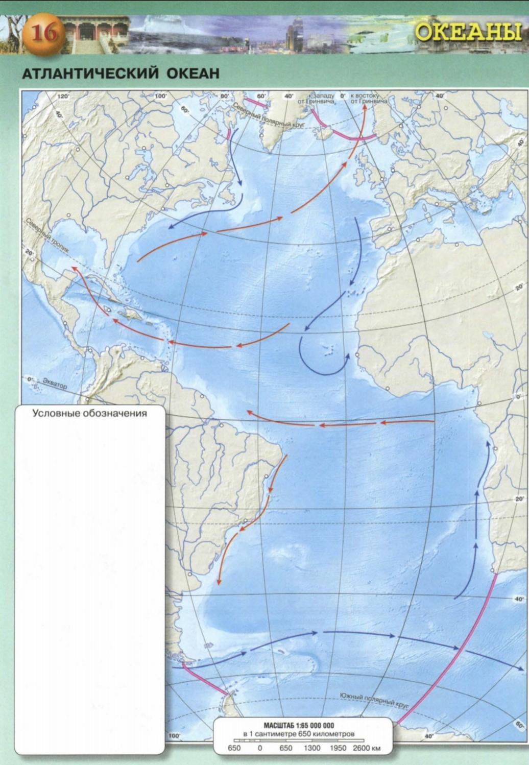 конт карта стр.16. (см. приклеп. файл) Подписать моря, заливы, проливы, океанические течения, Срединно-океанический хребет. Смотреть атлас, стр.24. конт карта стр.16. (см. приклеп. файл)