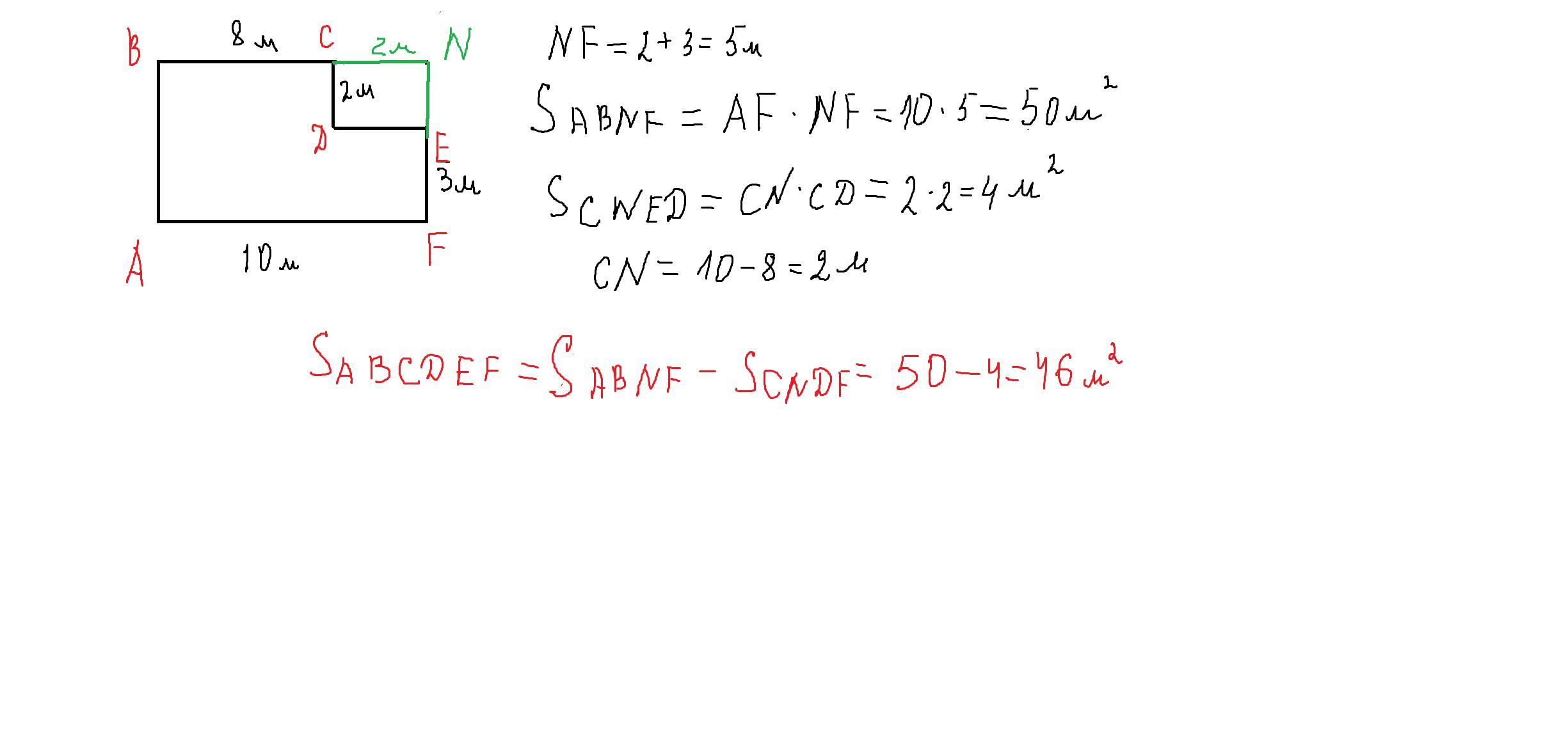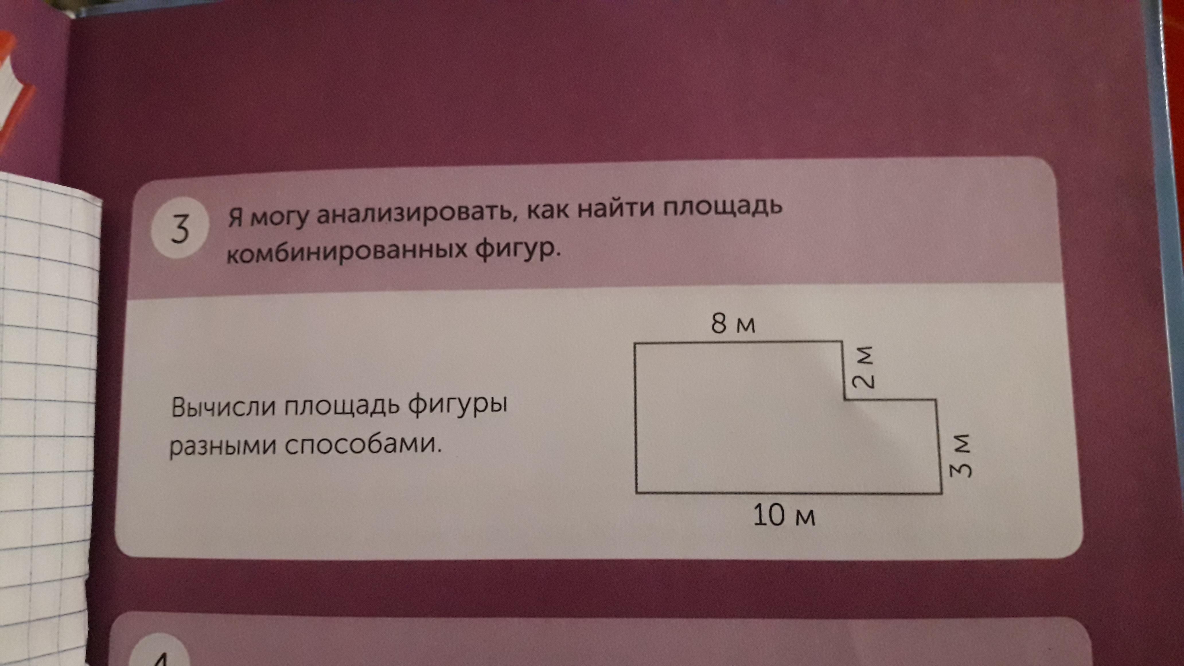 можно найти площадь фигуры ,разбив ее на 2 прямоугольника.Это 1 способ.