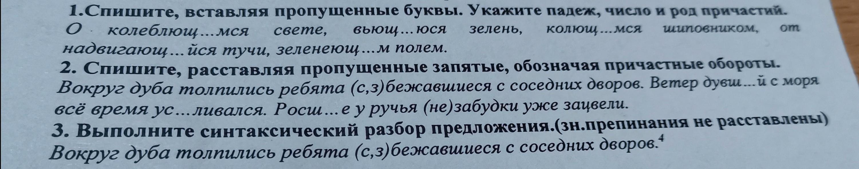 2.Вокруг дуба толпились ребята, сбежавшиеся с соседних дворов. Ветер, дувший с моря, всё время усиливался. Росшие у ручья незабудки, уже зацвели.