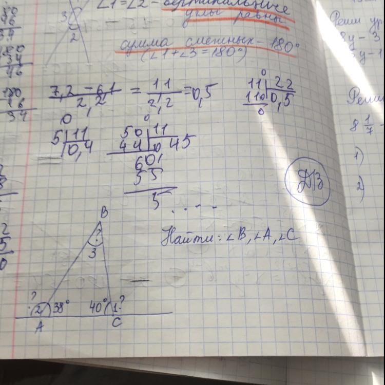 Сумма углов треугольника равна 180и градусам. Да бы найти угол 3, 180-(38+40)=102