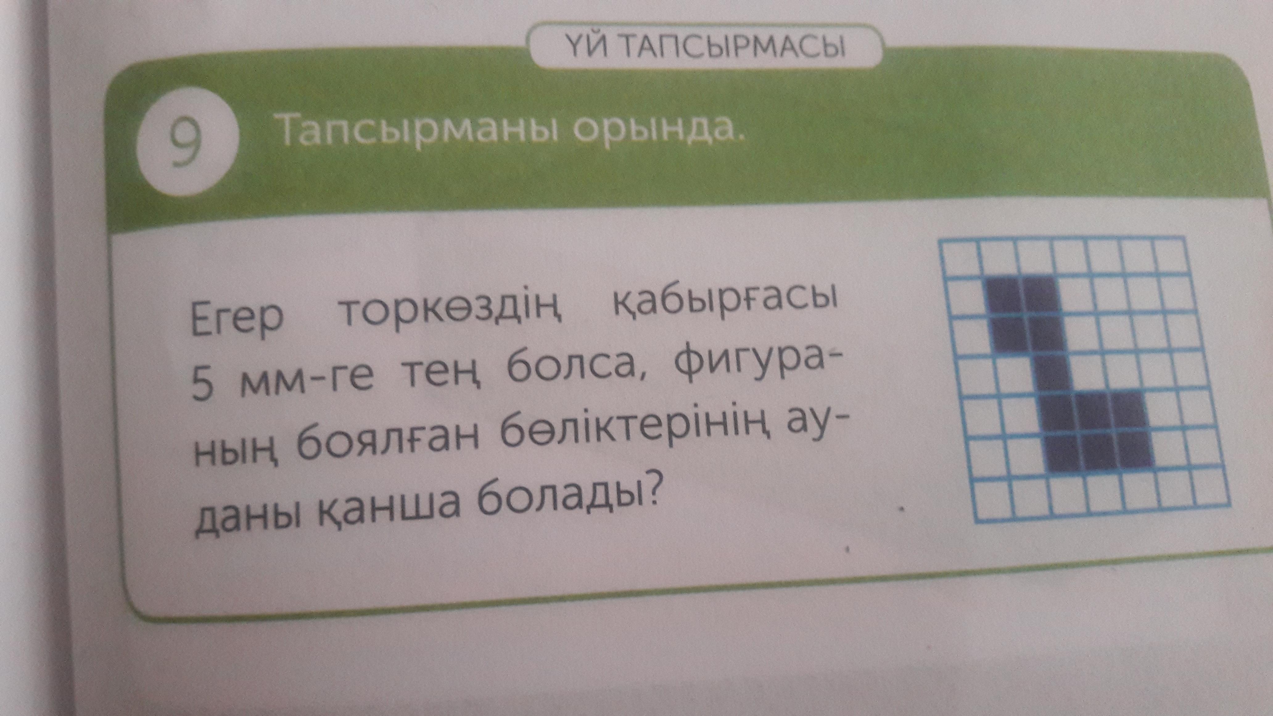 Егер торкөздің қабырғасы 5мм ге тең болса, фигураның боялған бөліктерінің ауданы қанша болады?