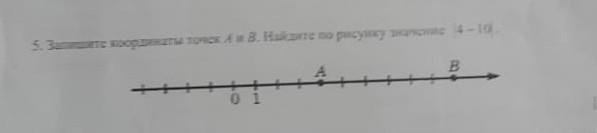 от 0 чёрточки до А и В считай! координаты А=4, В=10, значение (или, по - русски, расстояние) |4 - 10|=|6|