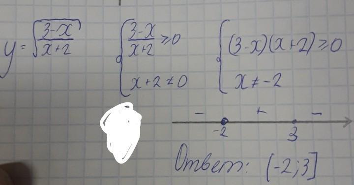 Ответ : область определения x ∈ (- 2 ; 3]