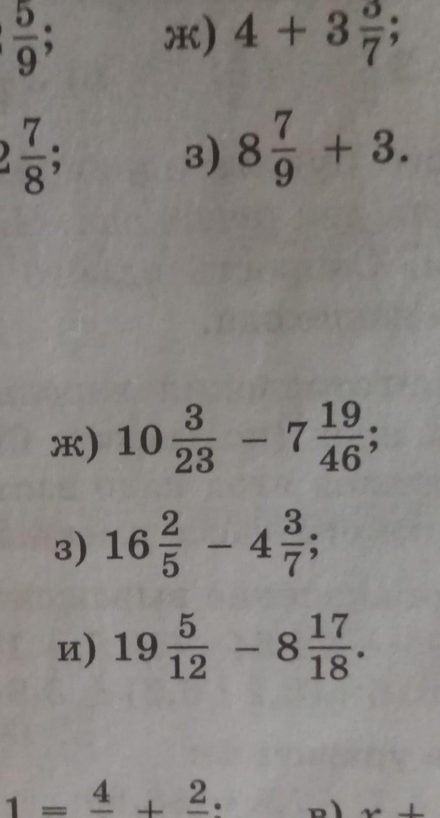 Ж) 10 6/46 - 7 19/46 = 2 33/46