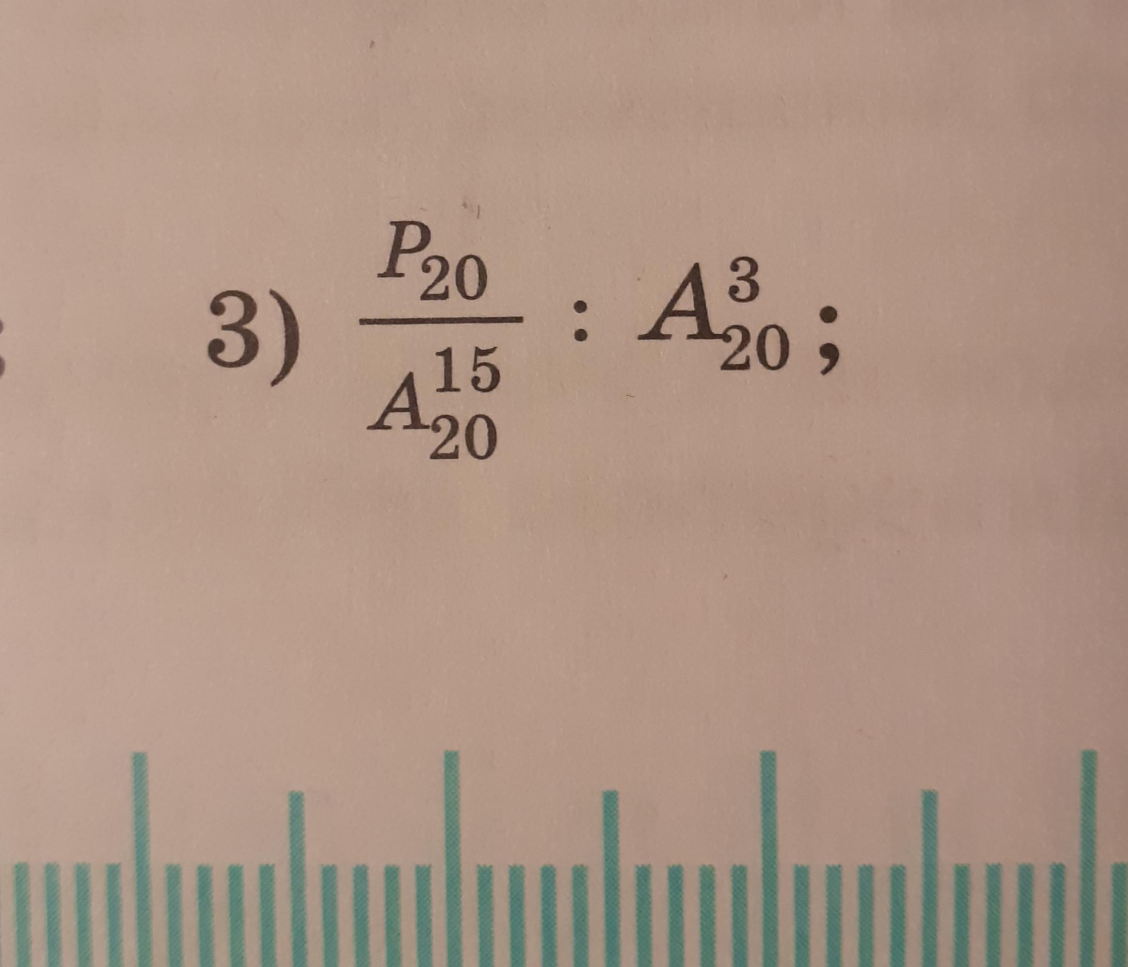 \frac{P_{20}}{A_{20}^{15}}:A_{20}^{3}=\frac{20!}{\frac{20!}{(20-15)!}}:\frac{20!}{(20-3)!}=\frac{20!5!}{20!}*\frac{17!}{20!} =\frac{5!}{18*19*20}=\frac{1}{57}\\\\Otvet:\boxed{\frac{1}{57}}