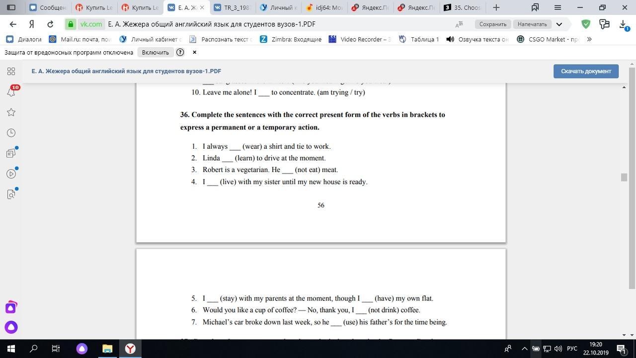 1. Wears 2. Is learning 3. Does not eat 4. Am living 5. Am staying have 6. Don't drink 7. Used