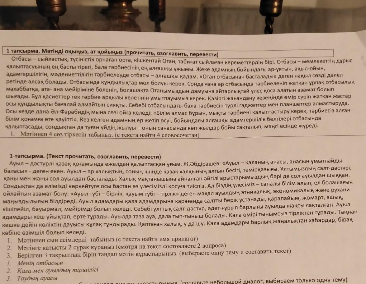 2)1-Ауыл адамдарының бауырмал, мейірімді болуының себебі неде? 2-Ауылдың ауасының таза болуына не себеп?
