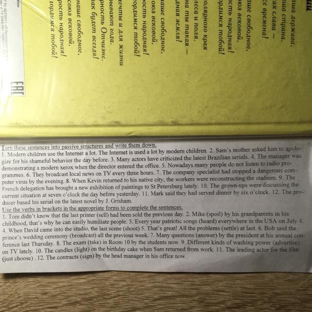 (Порыв ветра выбирает). 12. Контракты (подписываются) главным менеджером в его офисе сейчас.