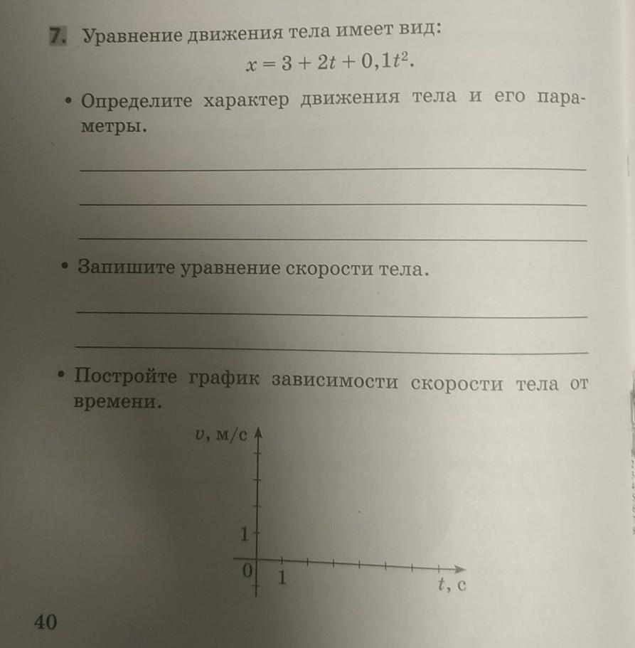 В начальный момент времени тело находилось в точке с координатой 3 м; оно двигалось ВДОЛЬ оси координат (Vox>0) со скоростью 2 м/с, тело разгонялось (ах>0) с ускорением 0,2 м/с².
