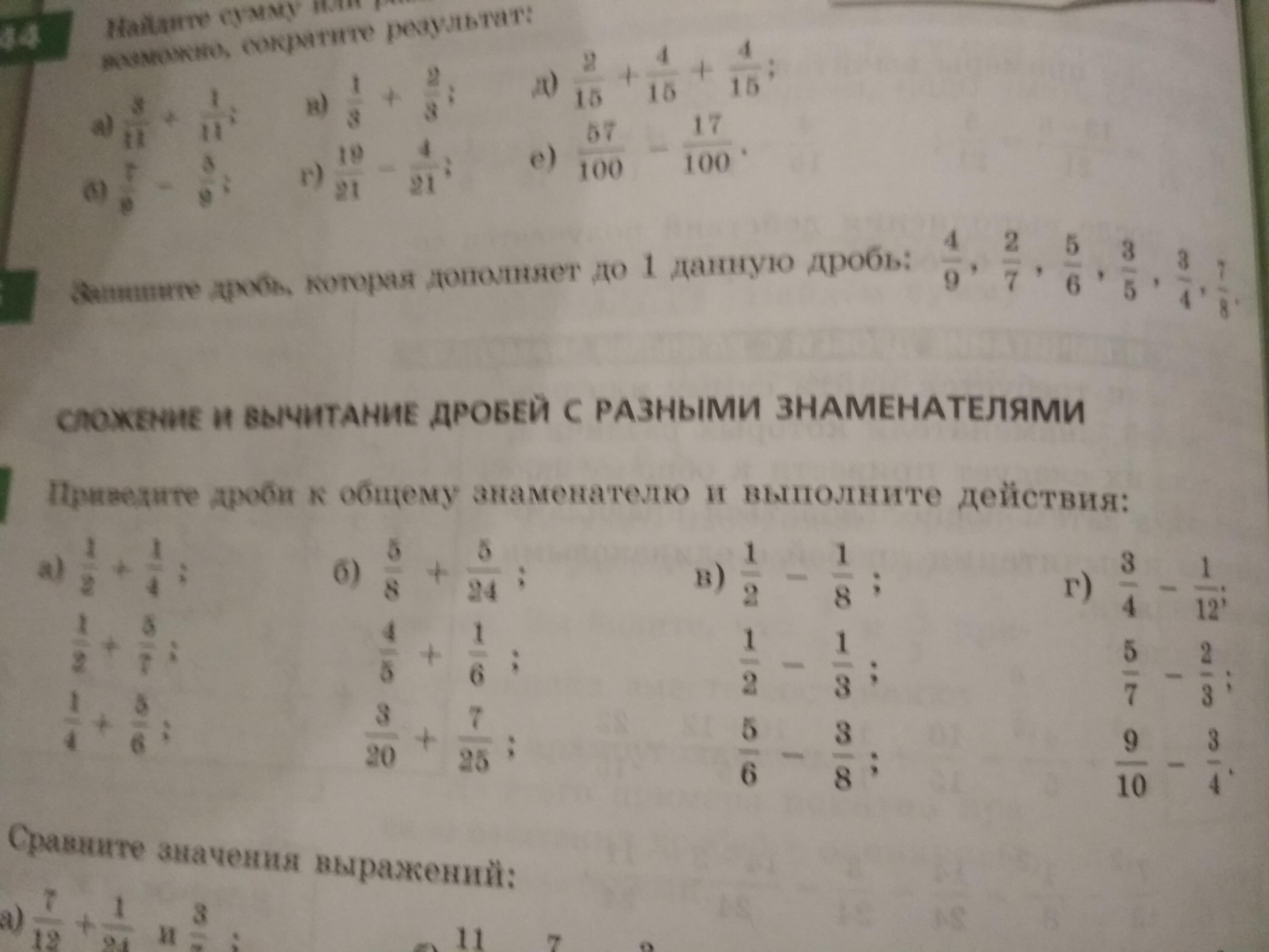 б) 5/8+5/24 = 15/24 + 5/24= 20/24