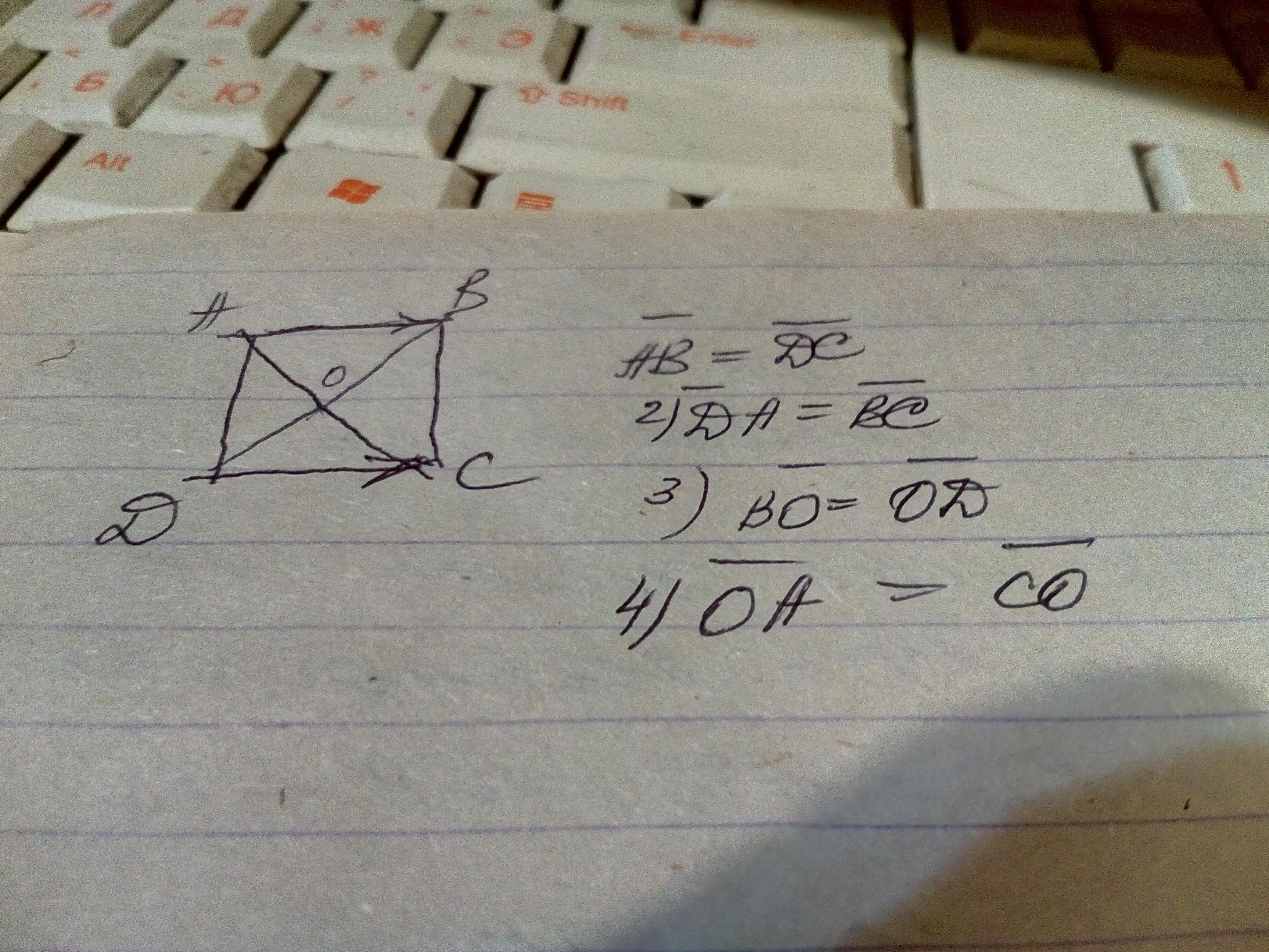 ABCD - квадрат, О - точка пересечения его диагоналей. Добавить вектор, равный вектору: